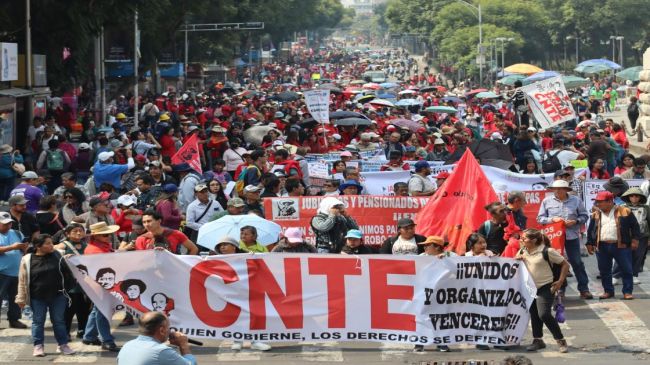 Ciudad de México. - Esta mañana, profesores de la Coordinadora Nacional de Trabajadores de la Educación (CNTE) tomaron las calles de la capital para emitir sus demandas y reunirse en Palacio Nacional con la presidenta constitucional, Claudia Sheinbaum Pardo.