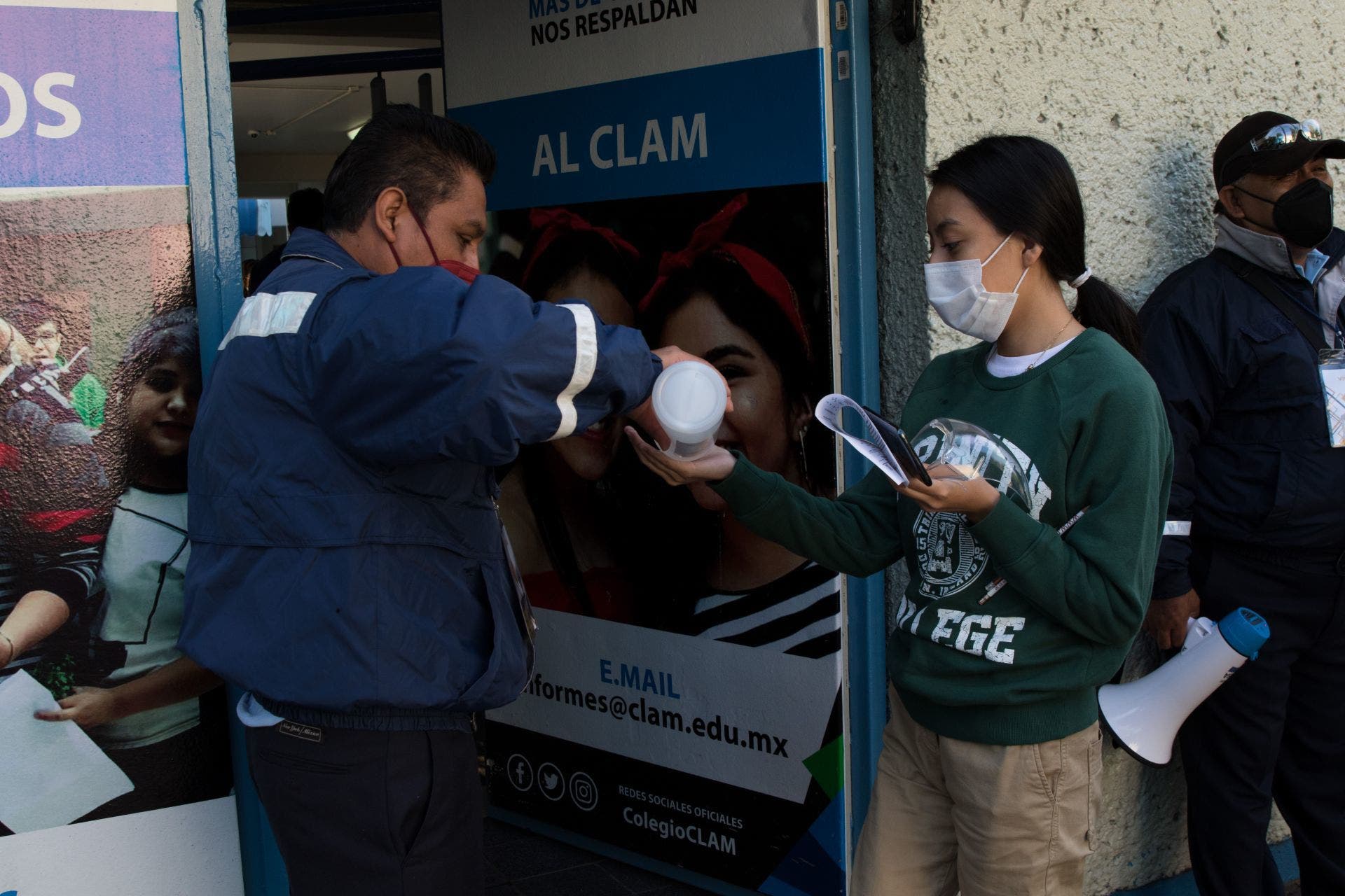 El personal de la UNAM ordenó las filas de acceso a la sede de tal forma que se respetara la sana distancia y se cercioraba de que los aspirantes portaran cubrebocas. Antes de ingresar al inmueble, se les tomó la temperatura y se les aplicó gel a los estudiantes.
