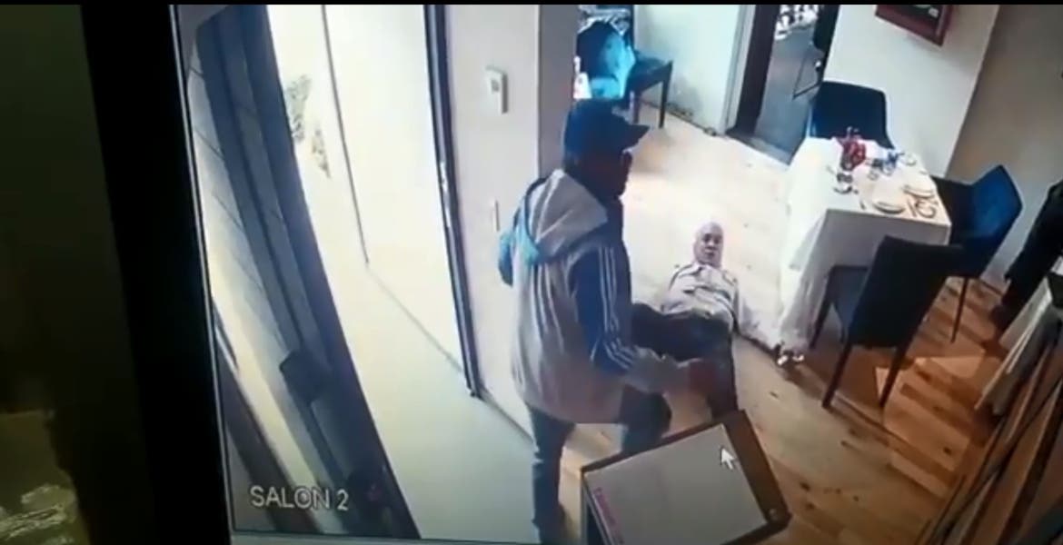 Al finalizar el atraco, los delincuentes huyen por la puerta de entrada, dejando tirado al hombre, quien se pone de pie y va tras ellos sin lograr detenerlos.