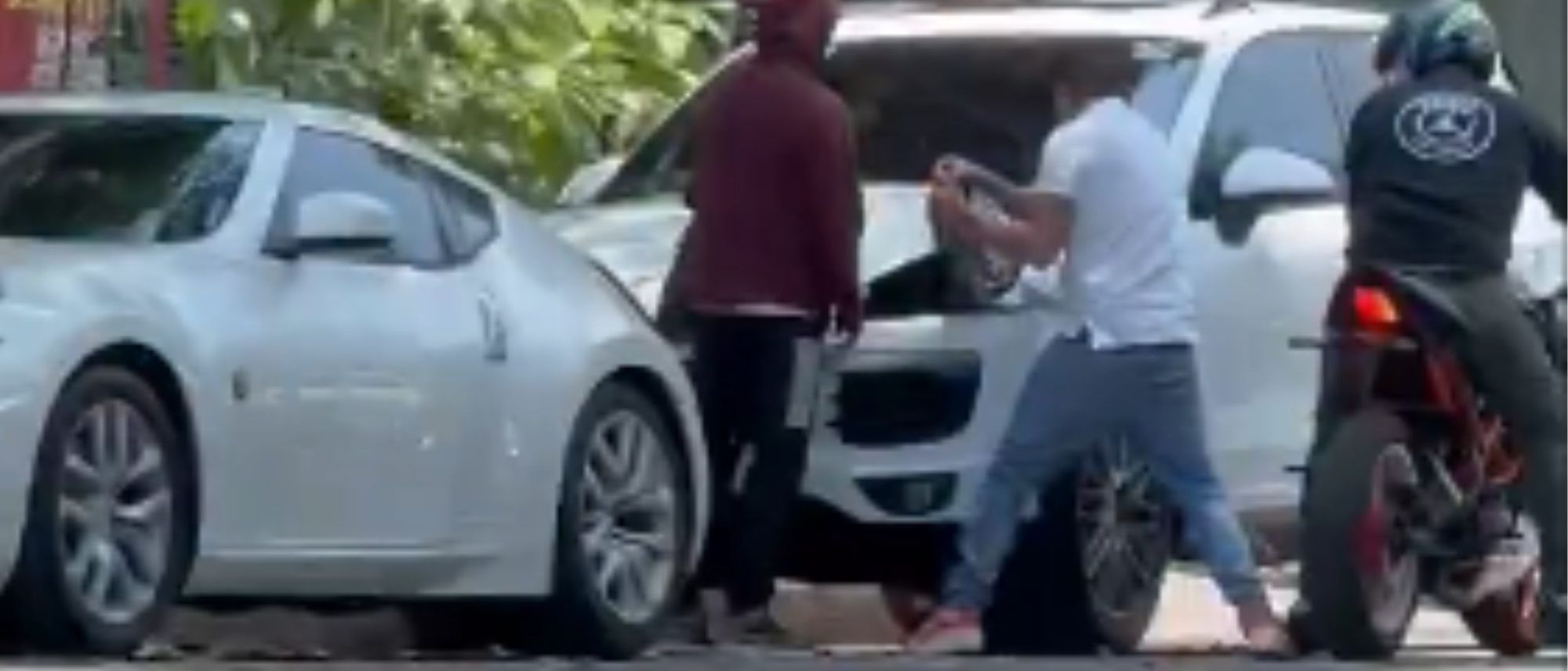 En el vídeo se observa como tres sujetos a plena luz del día arrancan de manera agresiva los faros de una camioneta de alta gama color blanco en la calle de Saltillo y Campeche dentro de la alcaldía Cuauhtémoc.