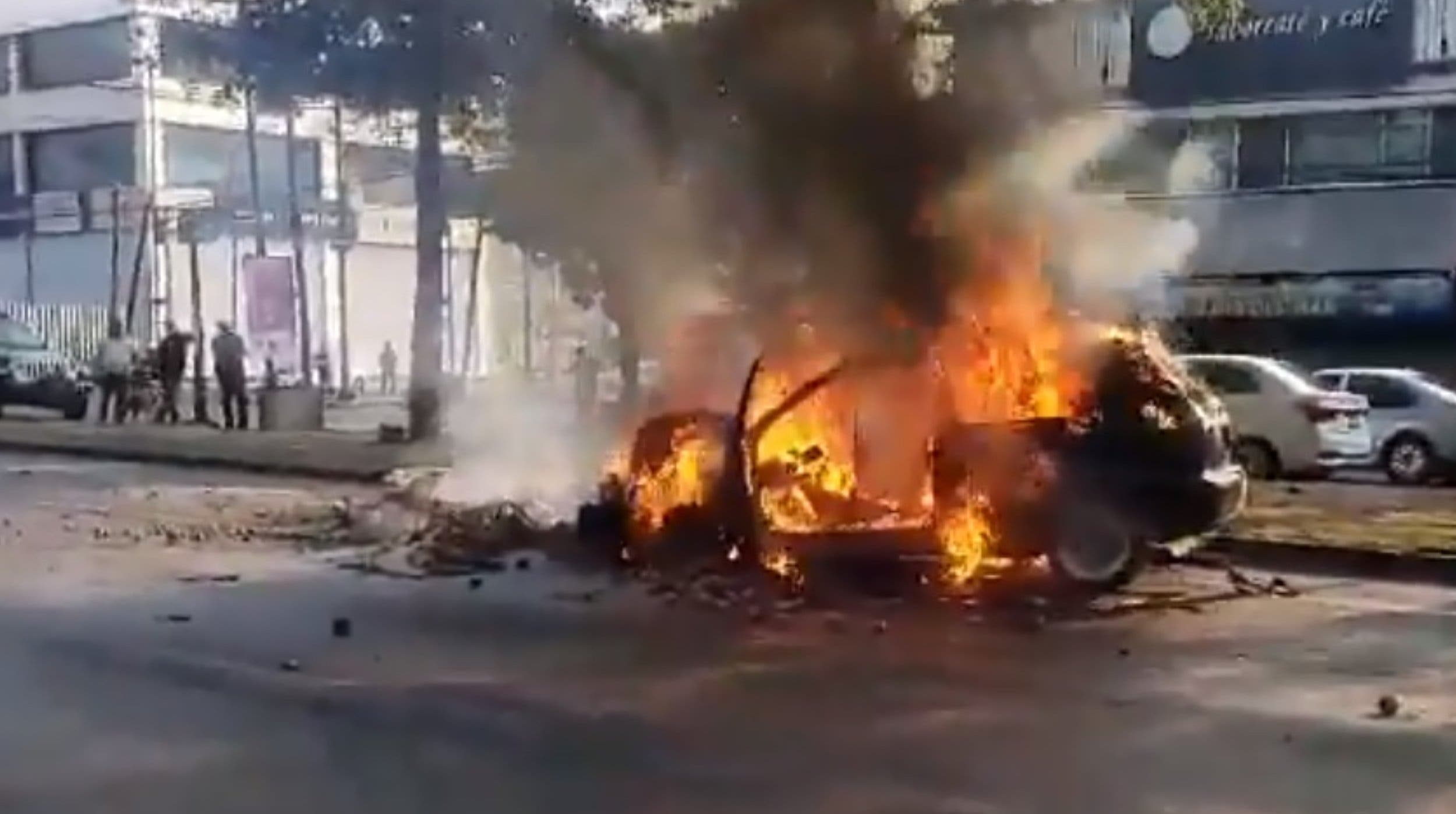 En el siniestro, la unidad consumida por el fuego impactó antes de incinerarse a un carro gris y a una camioneta, las cuales resultaron con daños menores.