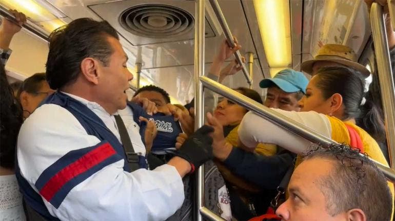 En la grabación exclusiva de Diario de México, se escucha el intercambio de insultos entre ambos pasajeros, en el interior del vagón que luce completamente lleno. Otro de los usuarios que se encontraba en medio de los dos protagonistas de este hecho le reclama al hombre: “es una mujer, para qué le pegas güey”, mientras la fémina sujeta con fuerza el brazo del presunto agresor.