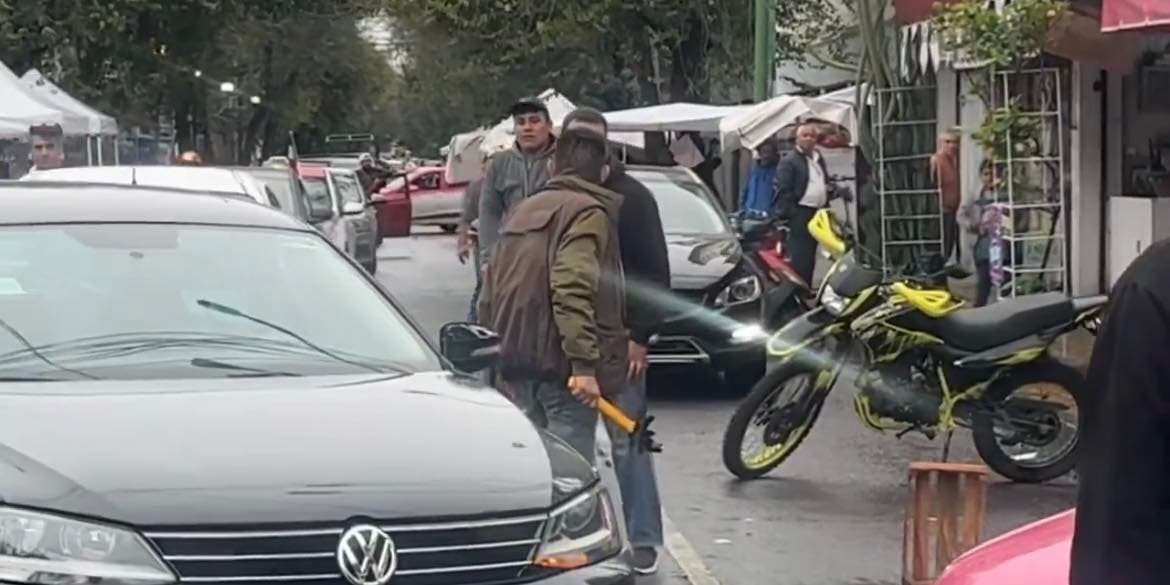 Por lo que la situación escaló rápidamente cuando el taxista sacó un martillo con la intención de agredir al conductor del otro vehículo, mientras que transeúntes le pedían que se calmara y soltara el martillo.