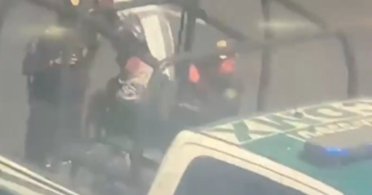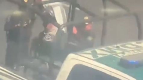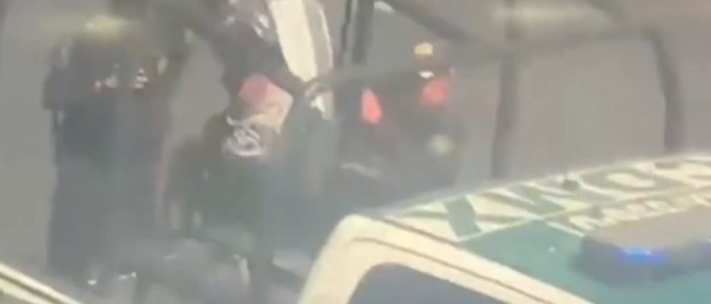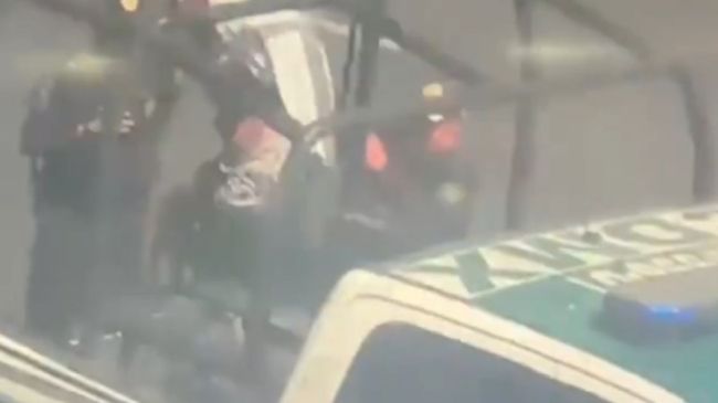 Imágenes compartidas por la SSC muestran el momento en que los elementos agrupados alrededor de una patrulla subieron a una mujer, quien iba cubriéndose el rostro con una sudadera; ella portaba una blusa negra y un pants.
