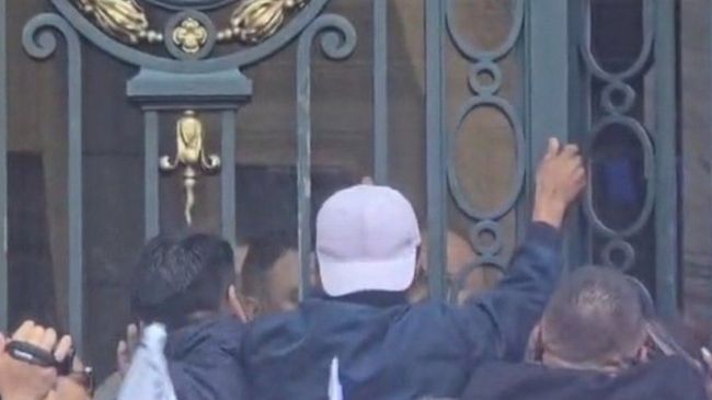 🚨Tensión en el Congreso de la CDMX: integrantes de la Asamblea de Barrios intentaron dar portazo, generando empujones con personal de seguridad.