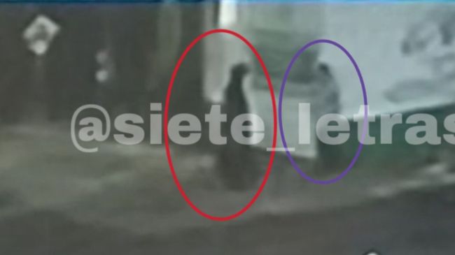 En ese momento, se observa la llegada de un sujeto vestido con una túnica negra que también llevaba una capucha. El individuo se acercó a Amanda, y ambos caminaron hacia una jardinera. La visibilidad de la cámara en ese punto quedó obstruida por el follaje de los árboles.