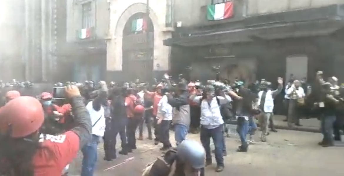 Video | Policías repliegan con gas a manifestantes del bloque negro durante la protesta por los ocho años de la desaparición de los 43 normalistas de #Ayotzinapa.