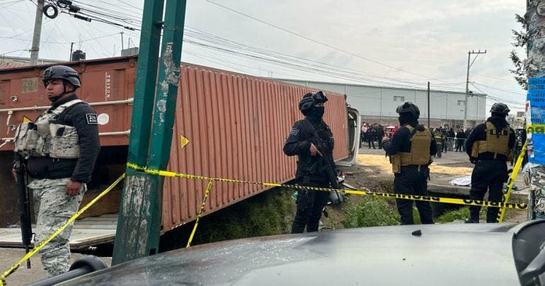 Al menos una persona perdió la vida tras la volcadura de un tráiler en el Boulevard Aeropuerto y la calle Juan Fernández Albarrán, en la colonia San Nicolás Tolentino, en Toluca, Estado de México.