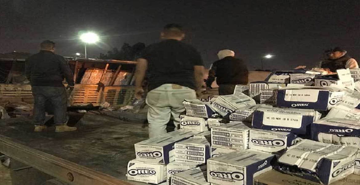 El accidente fue causado por la falta de experiencia del operador, quien al ingresar a la curva con el tráiler cargado de varias toneladas de galletas se desplomó sobre la vialidad.