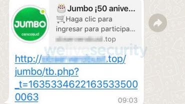 Engaño vía WhatsApp ofrece falsas tarjetas de supermercados Jumbo