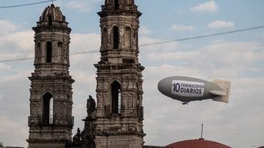 Protestan con zeppelin contra feminicidios en CDMX