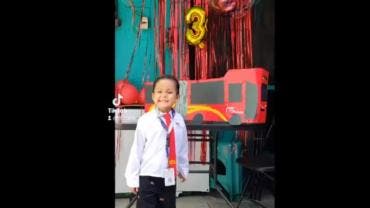 Niño celebra su cumpleaños 3 con temática del Metrobús
