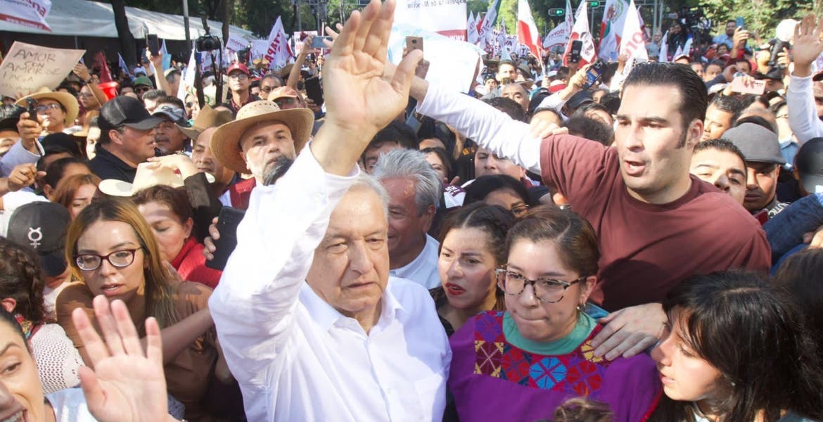 Acercan auto de AMLO para llevarlo al Zócalo tras multitud de simpatizantes
