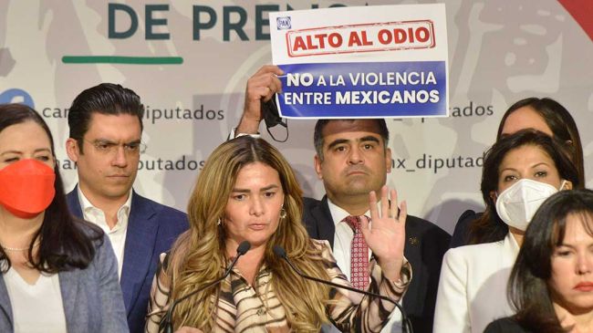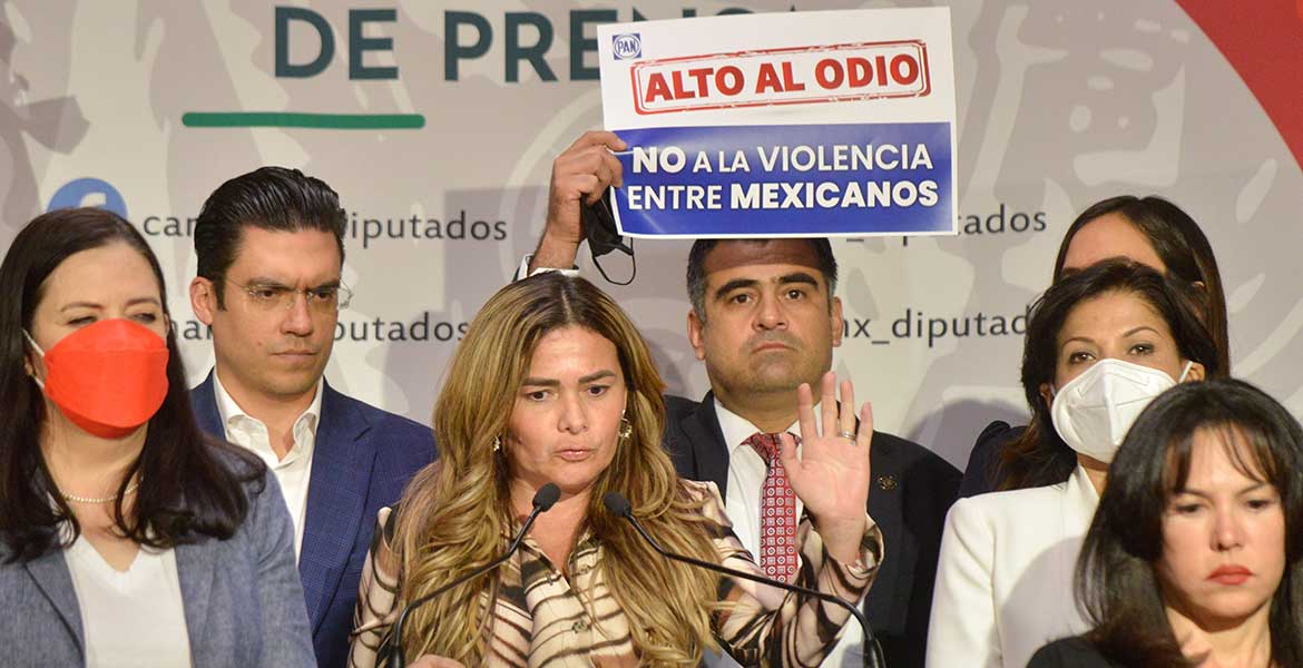 Ciudad de México.- Integrantes del grupo parlamentario del Partido Acción Nacional (PAN) en la Cámara de Diputados acusaron al gobierno federal y al Movimiento de Regeneración Nacional (Morena) de intimidación, acoso y promoción del odio en contra de los opositores al presidente Andrés Manuel López Obrador, a dos días de que se frenara la reforma eléctrica en San Lázaro.