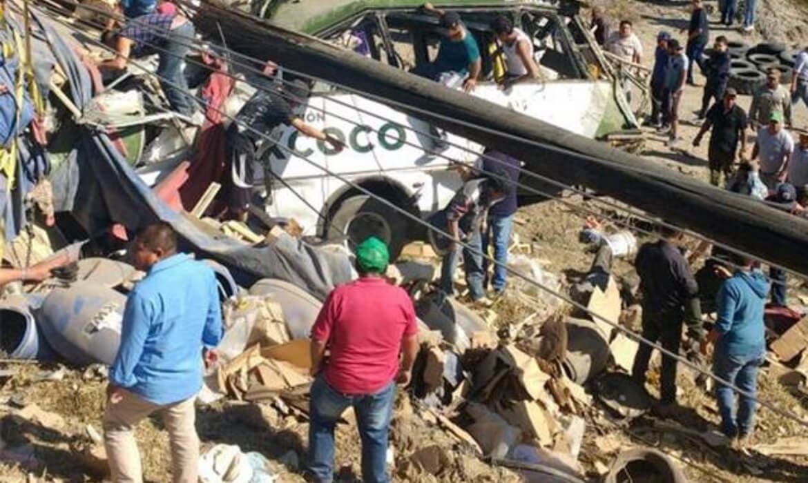 De acuerdo a las primeras versiones, el peso del camión de carga ocasionó que este se volcara en la curva de Santa Inés, provocando que el autobús cayera en un barranco.