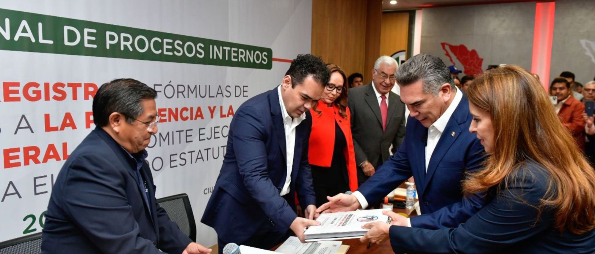 Alrededor de las 11:00 horas de este lunes, “Alito” Moreno y Carolina Viggiano se presentaron en la Comisión Nacional de Procesos Internos del partido para entregar la documentación correspondiente que los acredita en la lucha por la reelección.