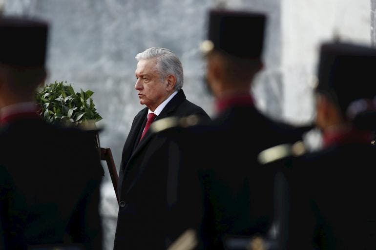 En la breve ceremonia, el presidente colocó una ofrenda floral en homenaje a los Niños Héroes, cadetes que murieron en 1847 en el Castillo de Chapultepec en la guerra entre México y Estados Unidos, y pasó revista a cada uno de ellos.