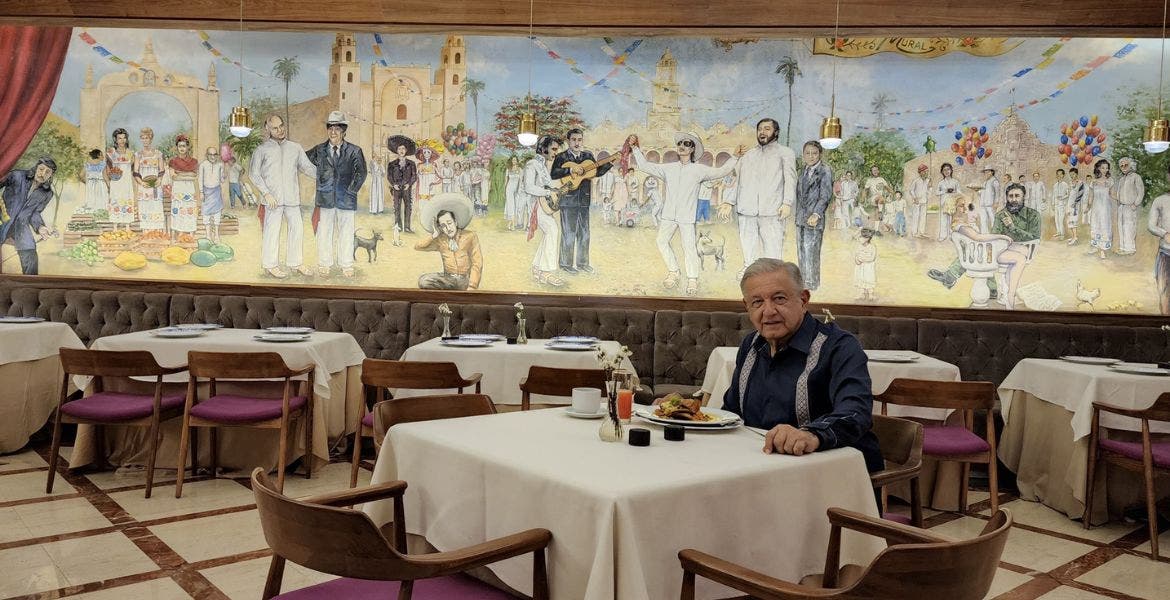 López Obrador, a través de Twitter, detalló que su desayuno fueron huevos motuleños, al tiempo en que disfrutó de un mural realizado por diversos artistas, pero bajo la dirección de Ariel Guzmán.