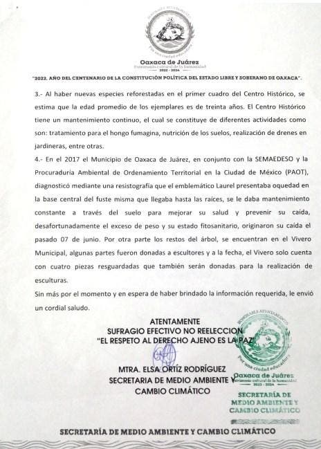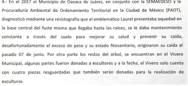 Oaxaca.- Hace una semana se reportó la caída del emblemático laurel del zócalo de Oaxaca de Juárez, debido presuntamente a un fuerte viendo que azoto la zona.