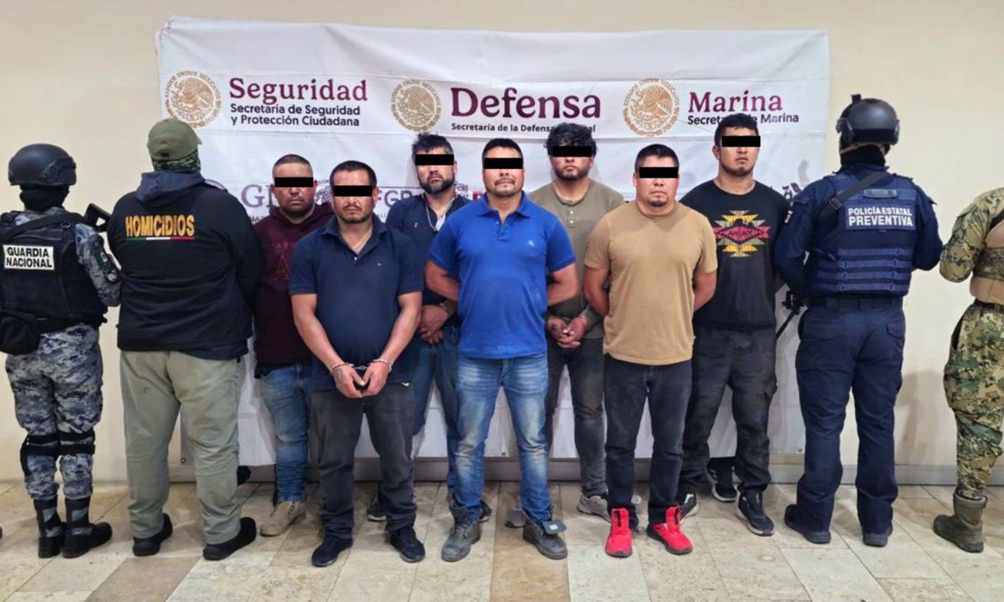 Durante la acción, las autoridades también aprehendieron a seis integrantes de su organización, identificados como Gerardo "N", Saúl "N" (alias "El Fósil"), Efrén "N" (alias "El Marañón"), Juan Antonio "N" (alias "Charo"), Favián "N" y Juan Carlos "N".