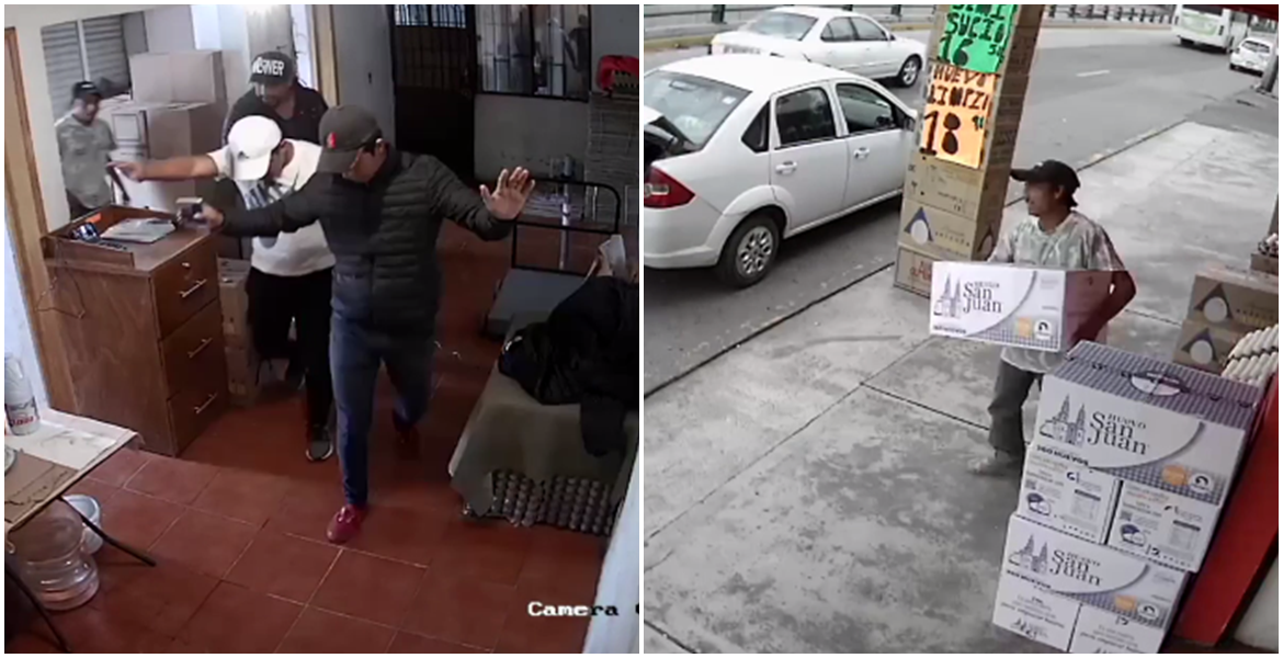 Cámaras de seguridad ubicadas en un negocio dedicado a la venta de huevo en Toluca captaron el momento en que tres sujetos ingresaron para asaltar a los vendedores el pasado 17 de agosto.