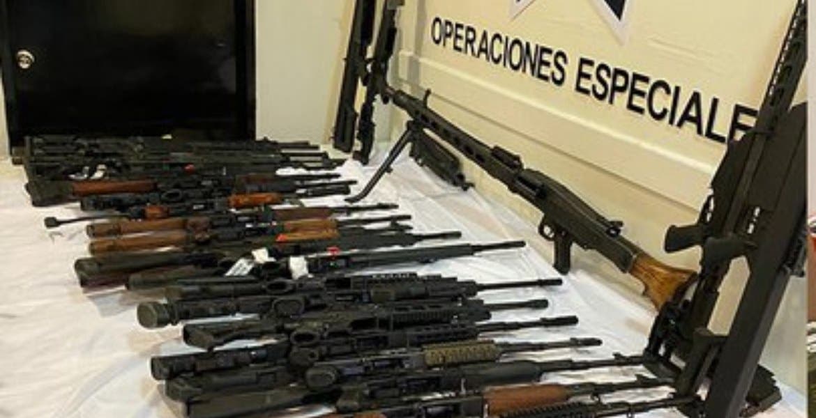 De acuerdo con informes iniciales reportados en una tarjeta informativa, entre las armas decomisadas se encuentran tres ametralladoras, barrets calibre 50 y las denominadas Kalashnikov.