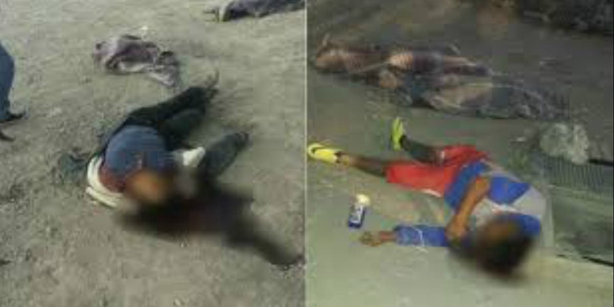 A los cuerpos los arrastraron un par de calles y los subieron a una camioneta para sacarlos de la comunidad.