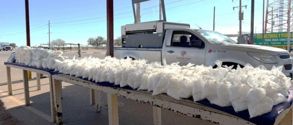 En San Luis Río Colorado, Sonora. @Defensamx1 y @GN_MEXICO_ aseguraron un vehículo procedente de Culiacán con destino a Mexicali con 212 kg de Metanfetamina con el propósito de ser vendidas en millones de dosis de droga.