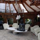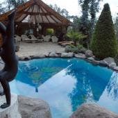 También tenía una alberca con puente colgante y un jacuzzi al aire libre.
