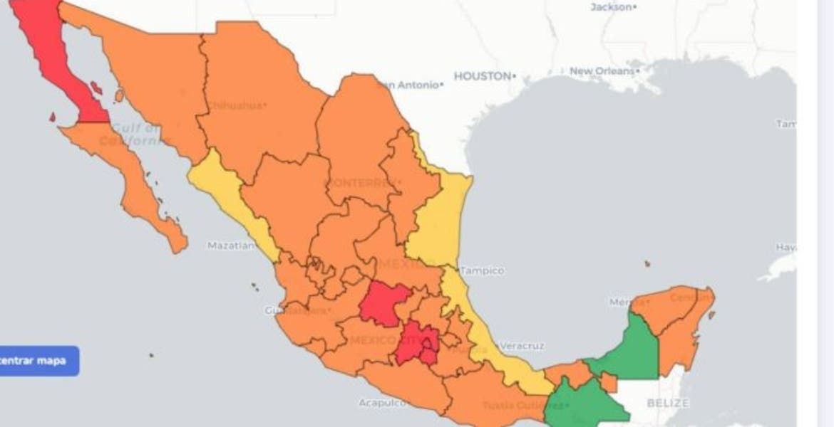 Mientras que Aguascalientes, Baja California Sur, Sonora, Chihuahua, Coahuila, Nuevo León, Durango, Zacatecas, San Luis Potosí, Nayarit, Jalisco, Querétaro, Hidalgo, Puebla, Tlaxcala, Michoacán, Colima, Guerrero, Oaxaca, Tabasco, Quintana Roo y Yucatán permanecerán en color naranja.