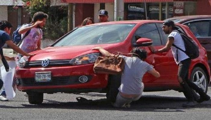 “Había un carril abierto, sin embargo, insistía en pasar por el carril donde estaban pasando las personas; cuando se les pidió que retiraran, tres automovilistas atendieron. Uno más no lo hizo y se arrojó, tirando a dos jóvenes, uno se levantó y el otro estaba por hacerlo, cuando el automovilista se arrojó contra ellos y le pasó por encima; se fue el chico grave, pero consciente”, señaló.