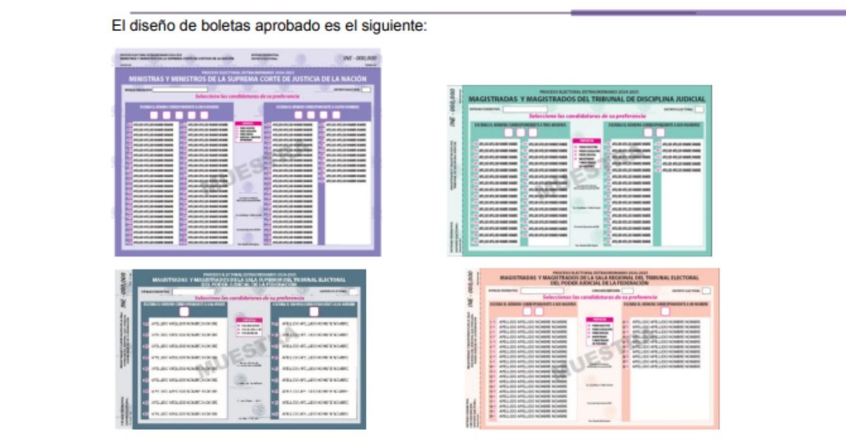 Ciudad de México.- Por fin, el Consejo General del Instituto Nacional Electoral (INE), aprobó el diseño e impresión de las boletas que se usarán para la primera elección judicial del país, a realizarse el 1 de junio de 2025, con excepción de las que son para juzgadores de distrito y magistraturas de circuito.