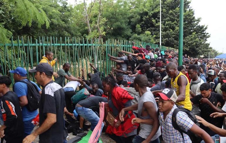 Tapachula.- Miles de migrantes, en su mayoría de África y Haití, derribaron este martes vallas metálicas en el sur de México para ingresar por la fuerza a las oficinas del Instituto Nacional de Migración (INM) y exigir su regularización.
