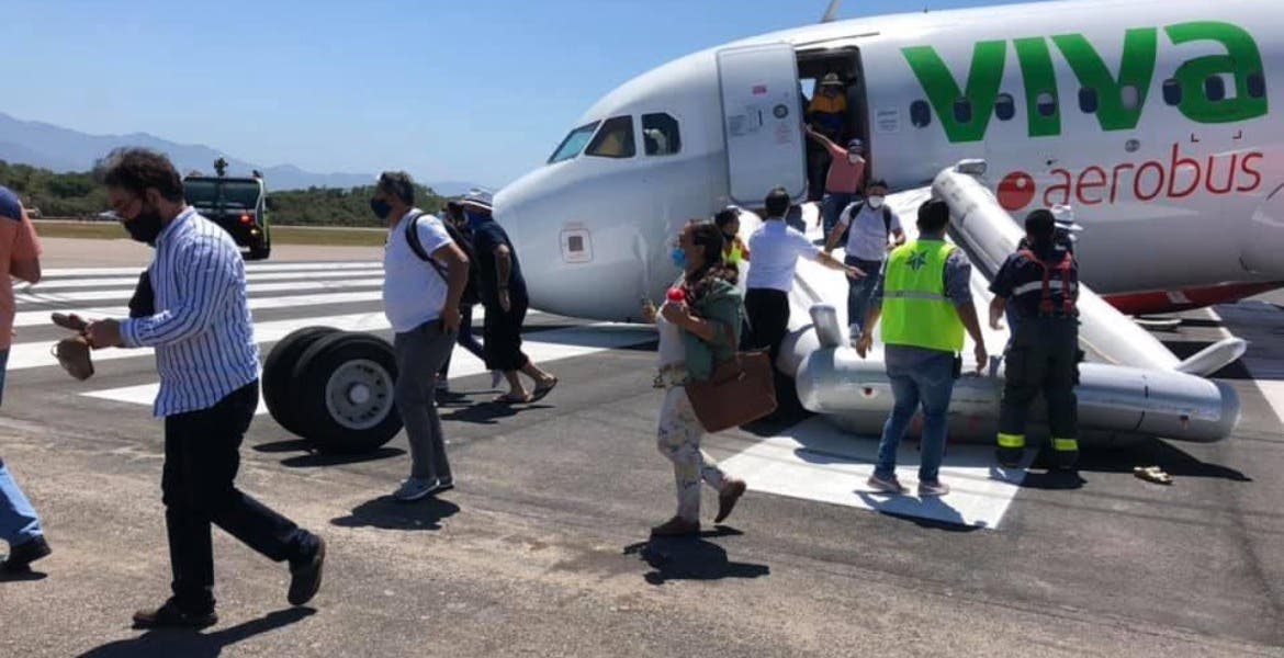 Algunas de las imágenes del incidente ocurrido hoy al vuelo VIV4343 (PVR-MTY) de Viva Aerobus al momento de ingresar a la pista para despegar. @Airbus A320 XA-VEZ @OMAeropuertos #PuertoVallarta pic.twitter.com/3mraTm4yCn