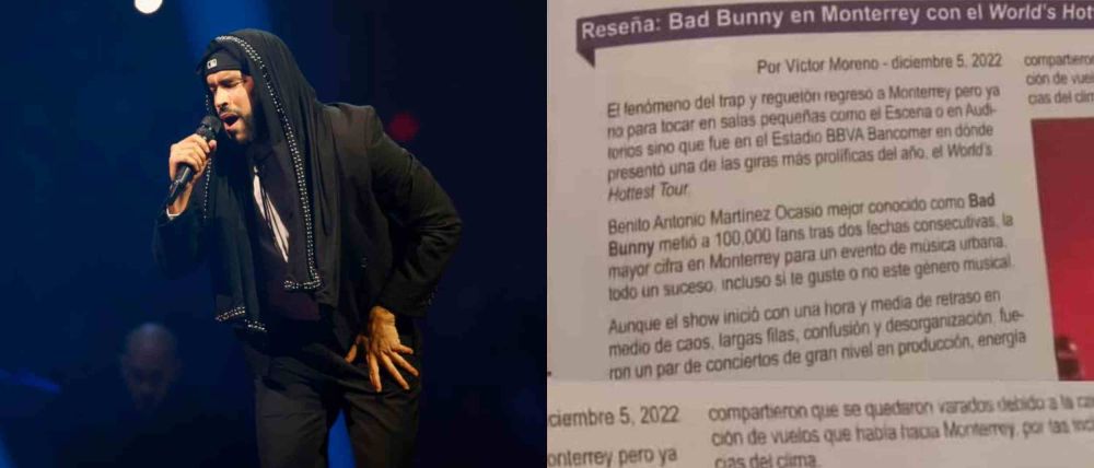 En cuanto a la otra imagen viralizada que muestra una reseña periodística de un concierto de Bad Bunny en 2022 en la ciudad de Monterrey, al norte de México, no fue posible encontrar su origen exacto.