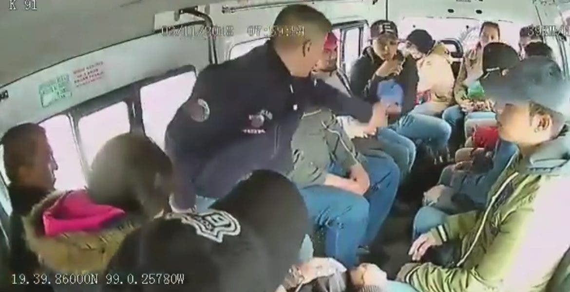En el material se observa cómo un hombre sube a la combi y comienza a despojar de sus pertenencias a los pasajeros, asimismo, se ve que uno de los tripulantes es su cómplice, pues comienza a pasarle algunas cosas para que las guarde.