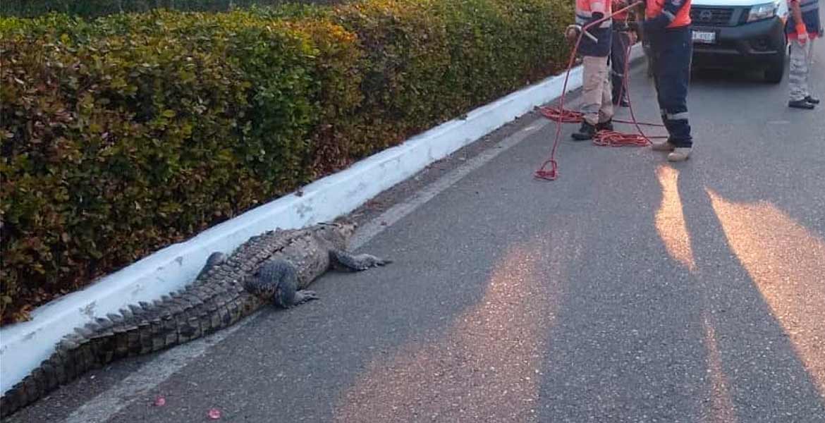 Vecinos del lugar y visitantes reportaron, alrededor de las 7:30 horas, la presencia del reptil que circulaba por la carretera que conduce a Playa Linda, en el municipio mencionado.