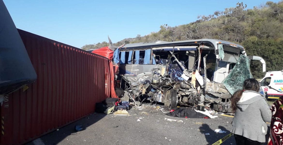 Choque entre tráiler y autobús deja dos muertos y 18 heridos en Michoacán