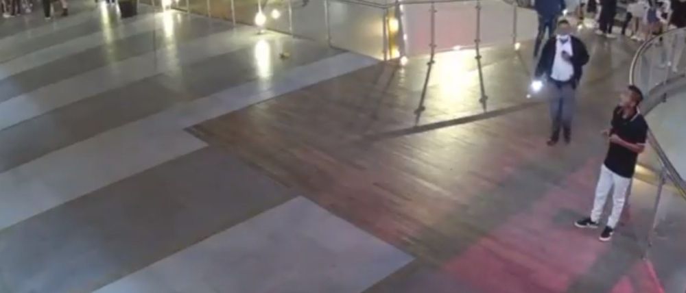 Las cámaras de seguridad capturaron el momento exacto en que el vidrio del barandal cedió, provocando la caída de más de una decena de personas desde una altura superior a los 12 metros.