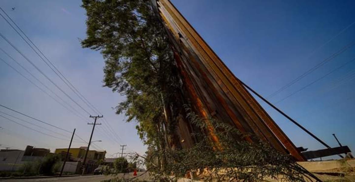 Colapsa parte de muro fronterizo en Mexicali por fuertes vientos