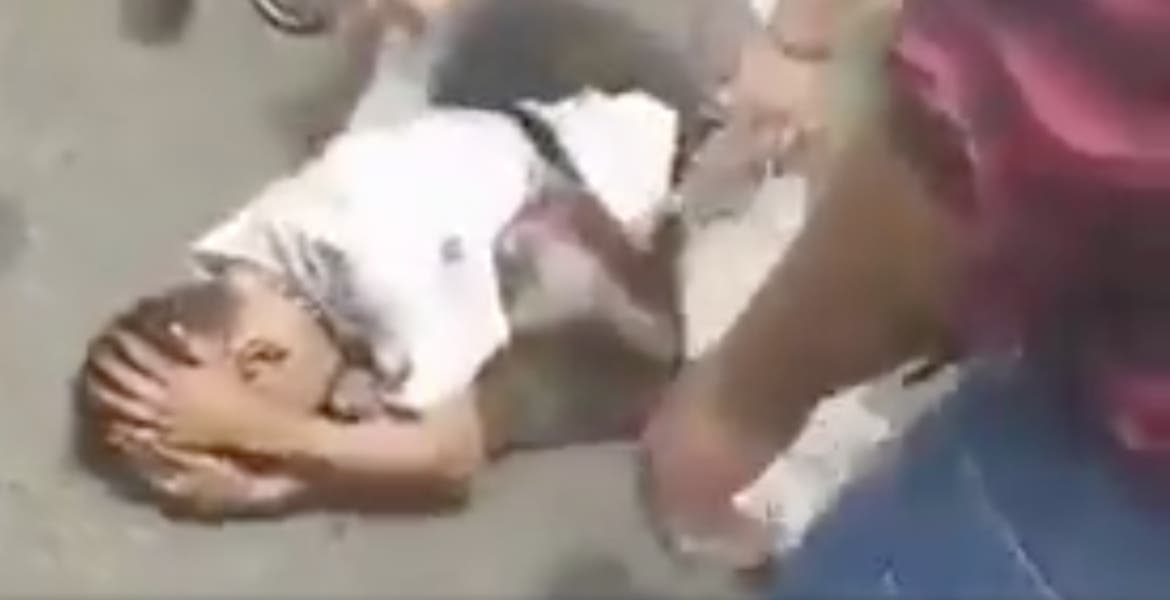 Posteriormente, los comerciantes golpean y patean al sujeto en el piso, quien no hacía más que suplicar que se detuvieran. Sus palabras tuvieron poco efecto, y tras dejarlo “tomar aire”, la golpiza continuó.