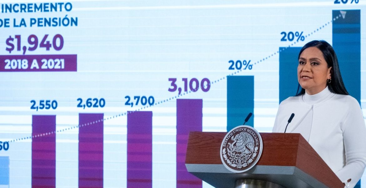 En conferencia desde Palacio Nacional, la subsecretaria del Bienestar Ariadna Montiel Reyes, indicó que los adultos mayores de 65 años que se inscribieron para recibir la pensión Bienestar en marzo, recibirán el pago retroactivo desde los tres bimestres si se encuentran entre los mil 182 municipios más pobres.