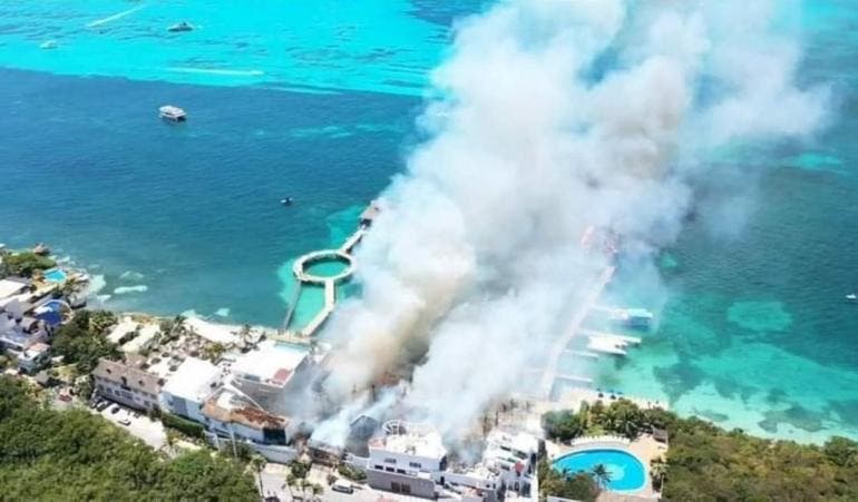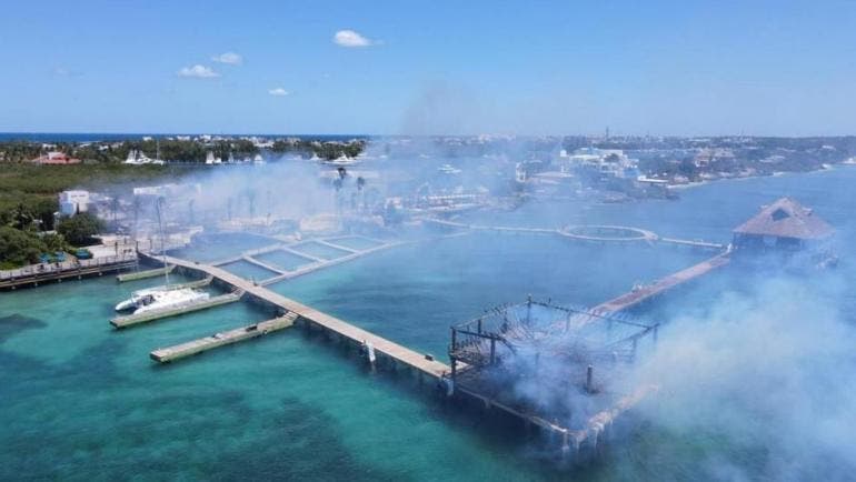 Delfinario en Isla Mujeres se incendia en Quintana Roo