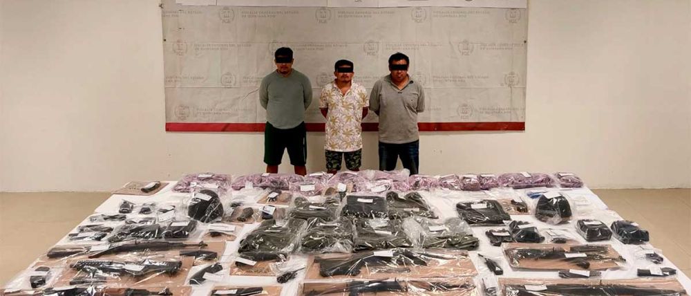 En el comunicado se apuntó que, al cumplir recorridos de vigilancia terrestre en el municipio de Tulum, en inmediaciones de la carretera Nuevo Xcan-Kantuninkin, los agentes ubicaron a tres personas quienes, al notar su presencia, intentaron huir, pero fueron alcanzados y tras realizar una inspección de seguridad les hallaron las armas y la droga.