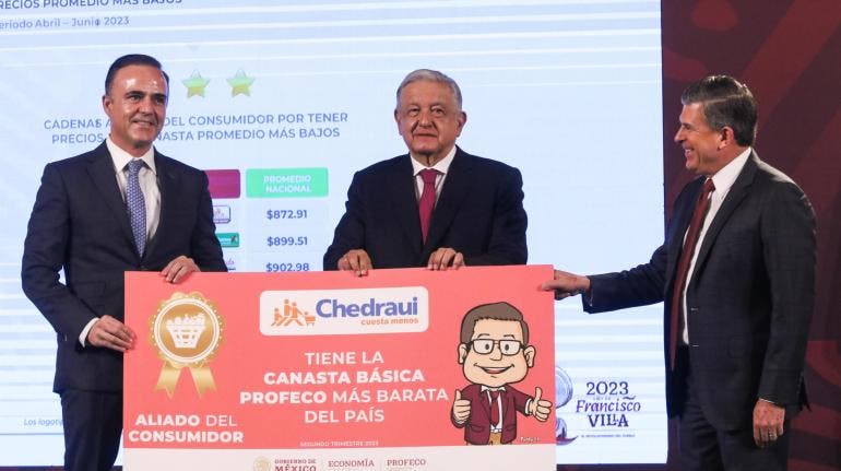 En la matutina, el servidor público destacó que para el trimestre abril, mayo y junio, Chedraui tuvo el primer lugar con un costo promedio de 872 pesos con 91 centavos de los 24 productos de la canasta básica.
