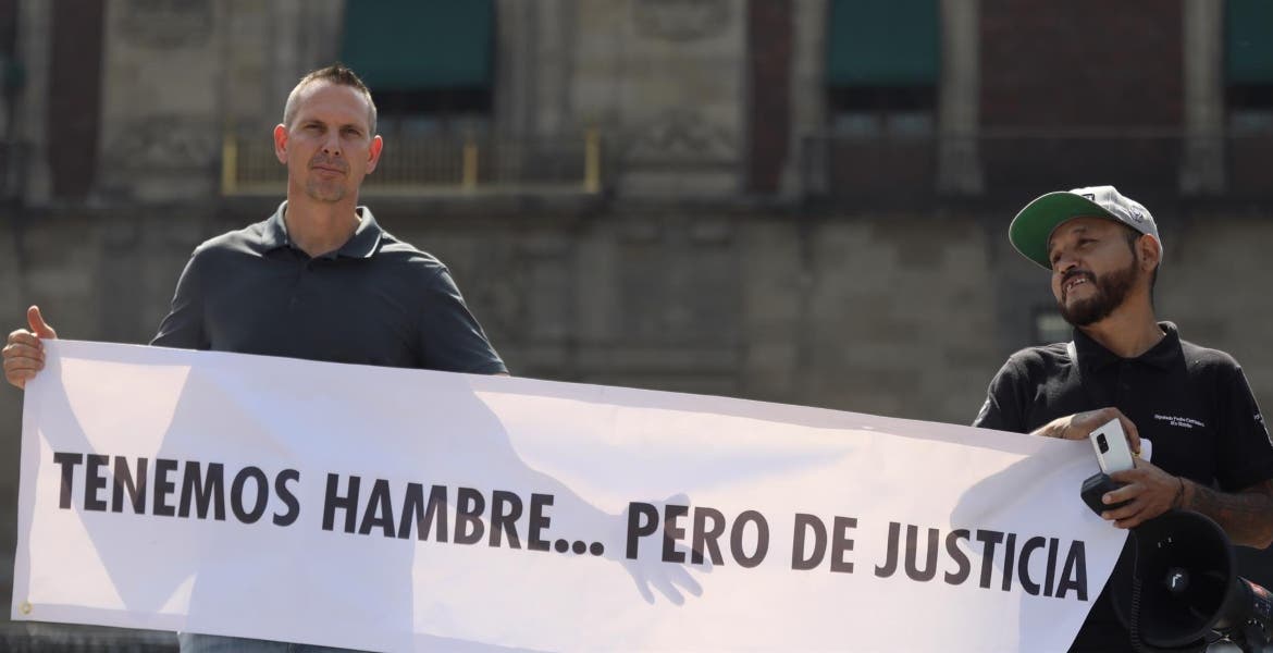 El diputado, el activista e Itzel del Carmen, la esposa de Valdovinos, se ubicaron enfrente de la puerta del Palacio Nacional, residencia de López Obrador, en el céntrico Zócalo de Ciudad de México, portando una pancarta en la que se lee: "Tenemos hambre... de justicia".