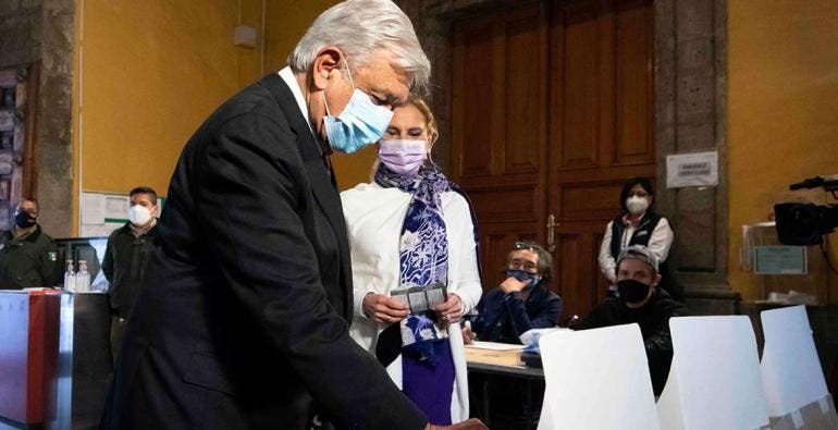 08:57.- El presidente Andrés Manuel López Obrador, junto con su esposa Beatriz Gutiérrez Müller emiten su voto en el Museo de Arte de la Secretaría de Hacienda y Crédito Público, a unos pasos de Palacio Nacional. (Ver nota completa).
