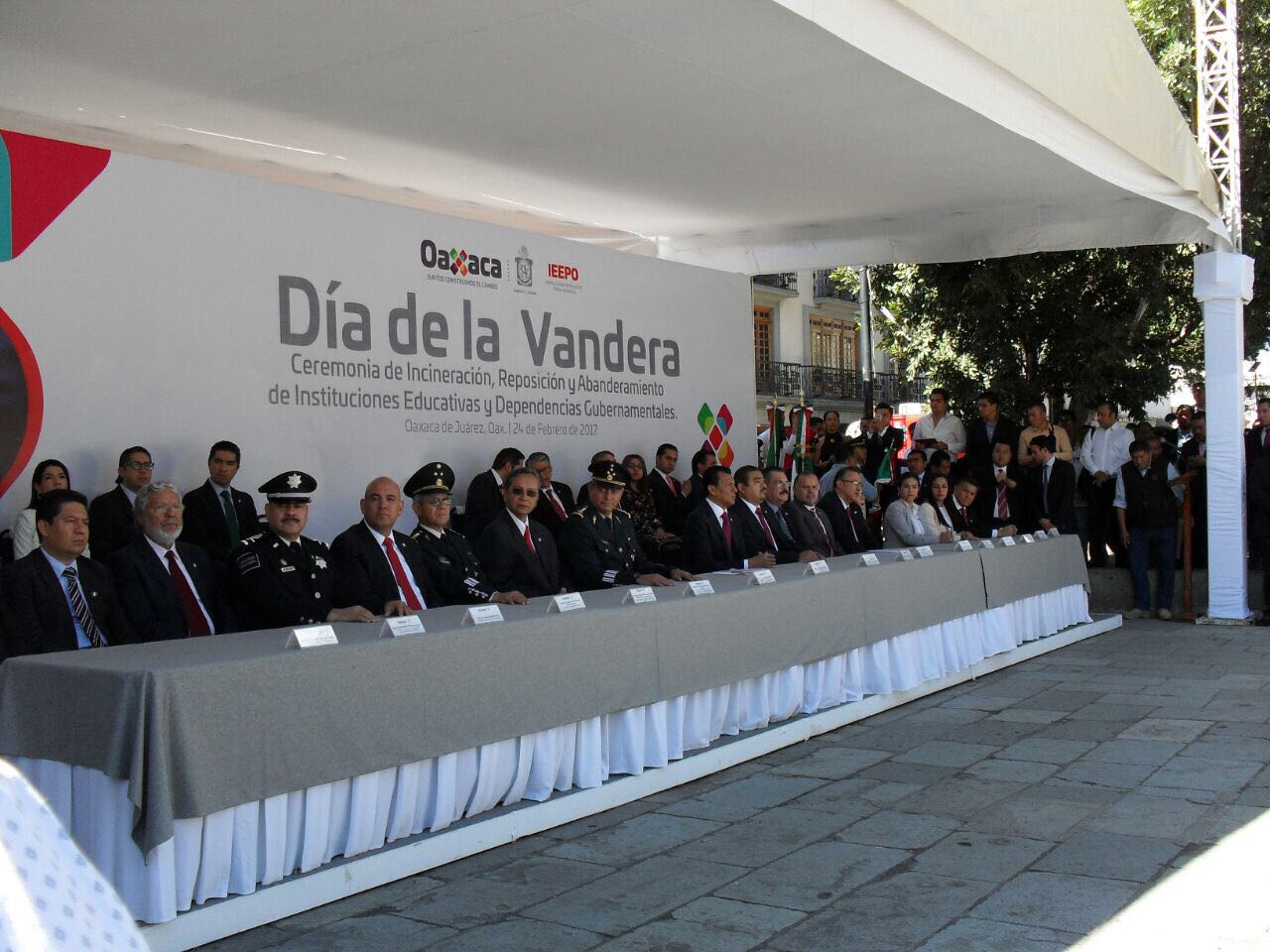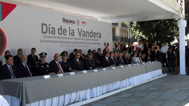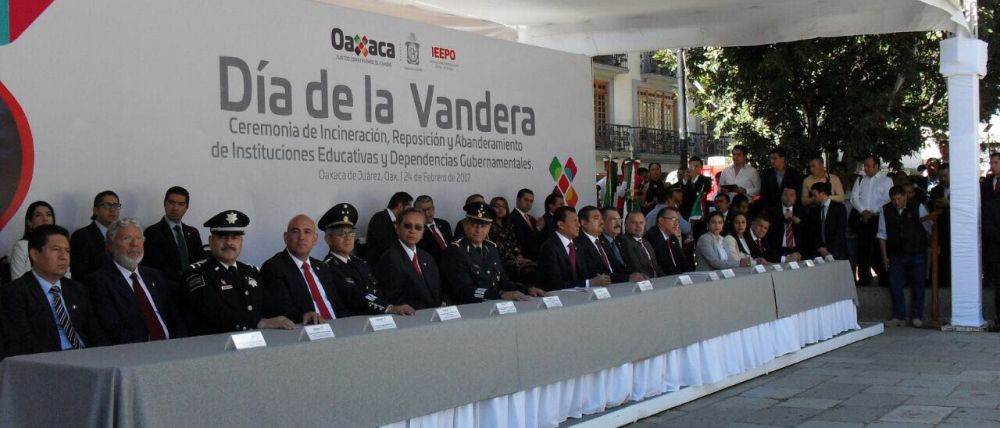 Usuarios de redes sociales “trolearon” al gobierno estatal de Oaxaca al editar la fotografía de un acto en conmemoración por el Día de la Bandera el pasado viernes 24 de febrero.