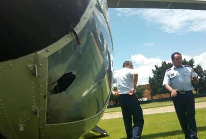 De acuerdo con primeros reportes, uno de los cohetes golpeó al helicóptero número cuatro, uno de las dos aeronaves encargadas de trasladar a la prensa que acompaña al Presidente durante sus giras.