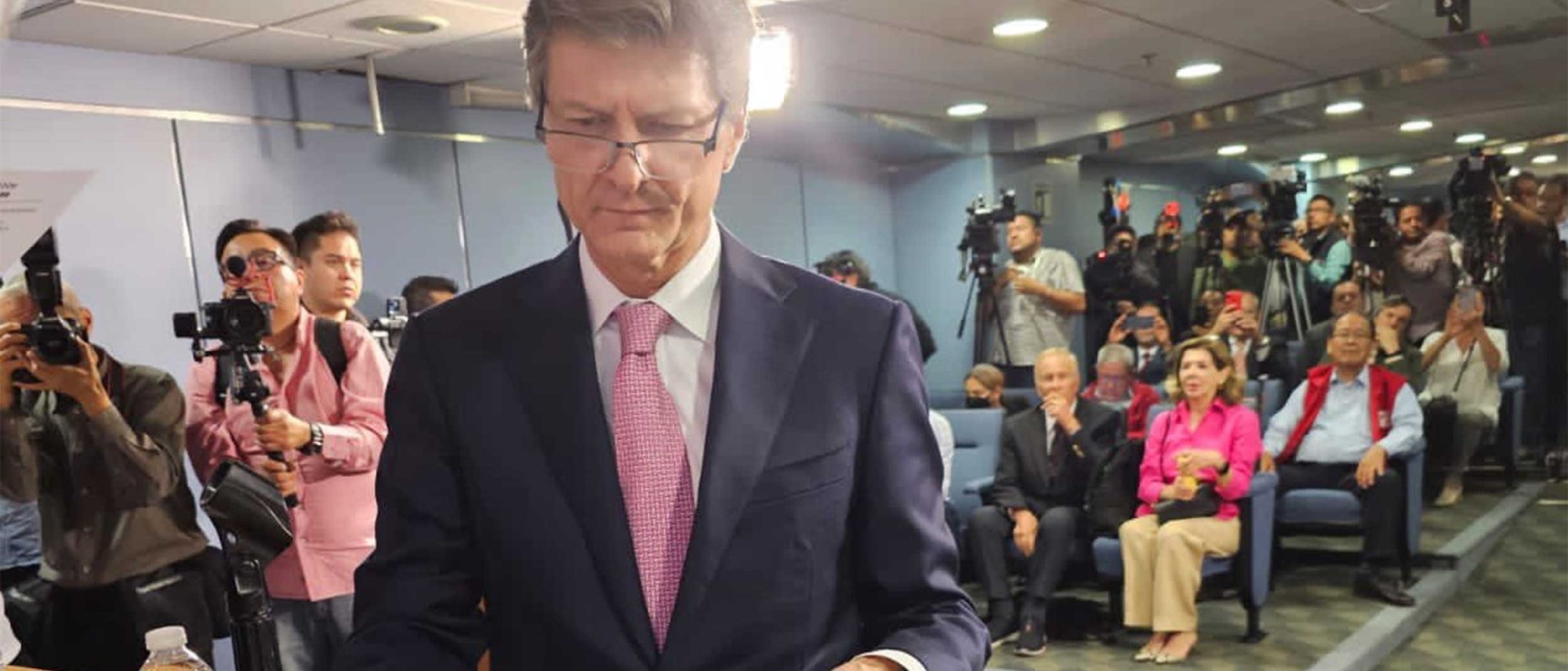 Ciudad de México.- El desfile de aspirantes de Va por México para dirigir el Frente Amplio por México (o bien, para la candidatura opositora a la Presidencia del país) continuó con su registro este miércoles en la sede del Senado de la República y el primero en llegar fue Enrique de la Madrid Cordero, quien acompañado de su esposa Isabel Prieto, realizó el trámite ante el Comité Organizador.